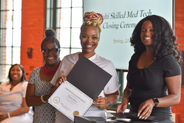 Over the course of the program, the trainees completed 260 hours of classroom instruction and 120 hours in a clinical setting, and received certifications for CNA, GNA, Phlebotomy, EKG, Medical Terminology, and CPR.