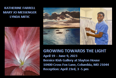 The gallery, Bernice Kish Gallery at Slayton House (10400 Cross Fox Lane, Columbia, MD) is free and open to the public. The hours are Monday – Friday from 9:00am – 4:30pm.