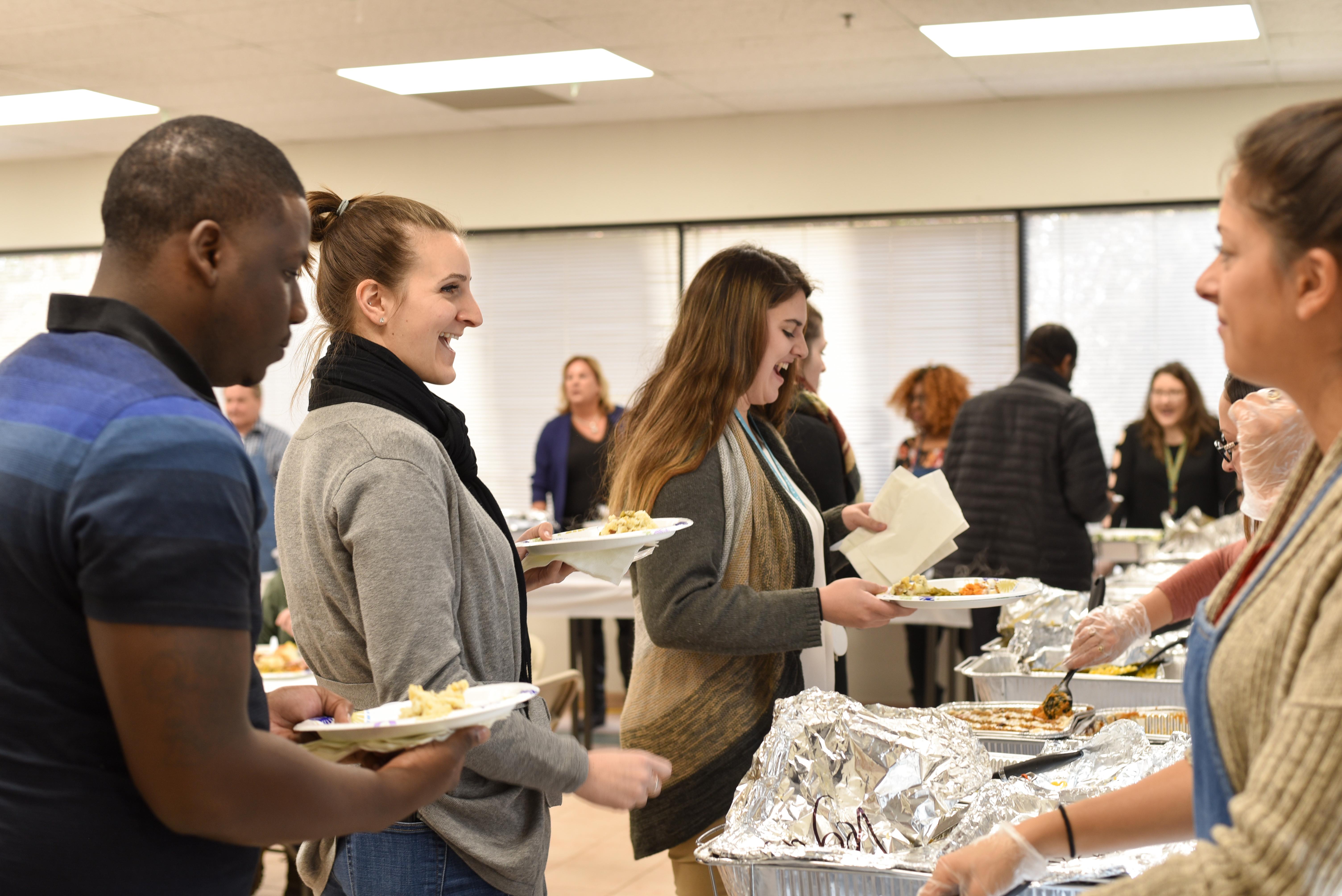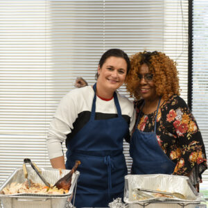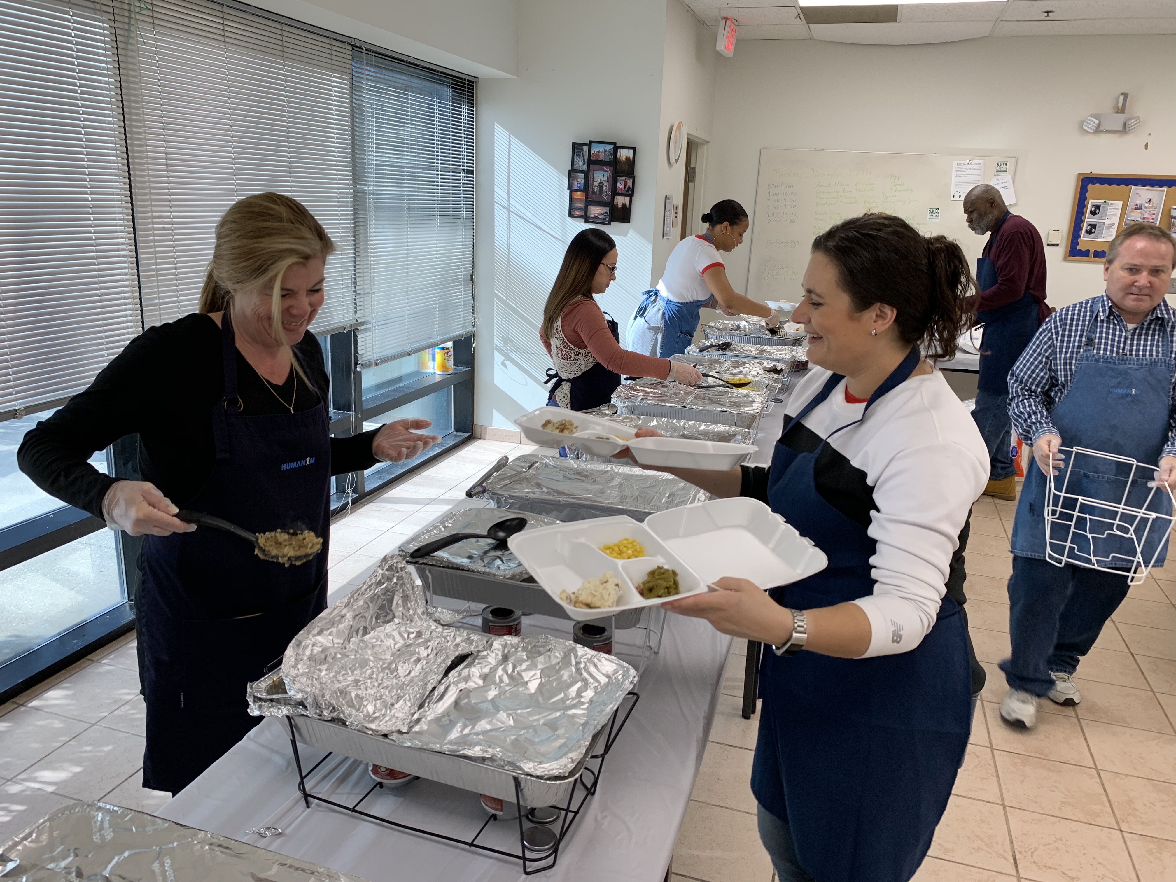 Attendees enjoyed a classic Thanksgiving spread, prepared and served by coworkers, and boxed meals got delivered to employees out in the community.