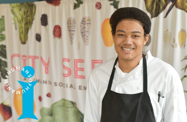David interned with City Seeds through Humanim’s Start on Success program in the summer of 2019. City Seeds’ Director of Operations says that David was quiet when he first started, but in the kitchen, he blossomed – taking initiative to lead other interns, making lunch for the entire staff, and even coming in on his day off to be in the space where he felt safe. Outside of the internship, David had been struggling to find stability. After losing both of his parents at the age of 7, David was adopted into a family, but faced many challenges, including spending several years in a group home.
