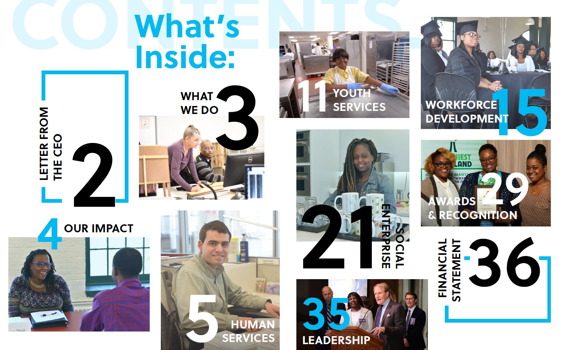 Including a Letter from our President & CEO, Henry Posko + our stories, successes, and milestones in Workforce Development, Youth Services, Behavioral Health, Developmental Disability Services, and Social Enterprise in 2018.