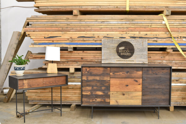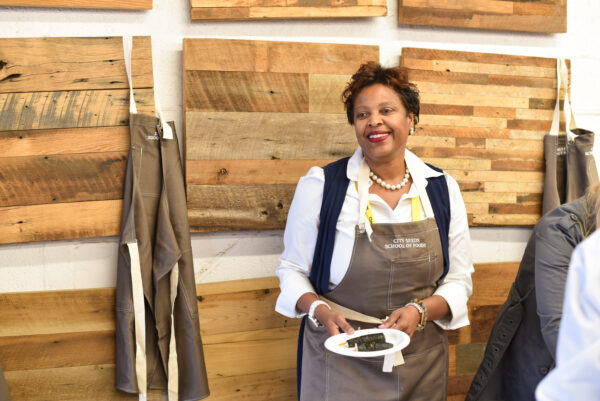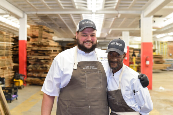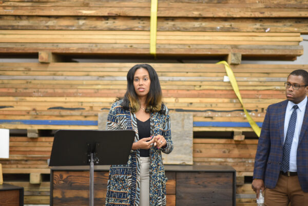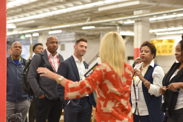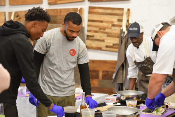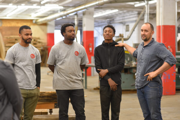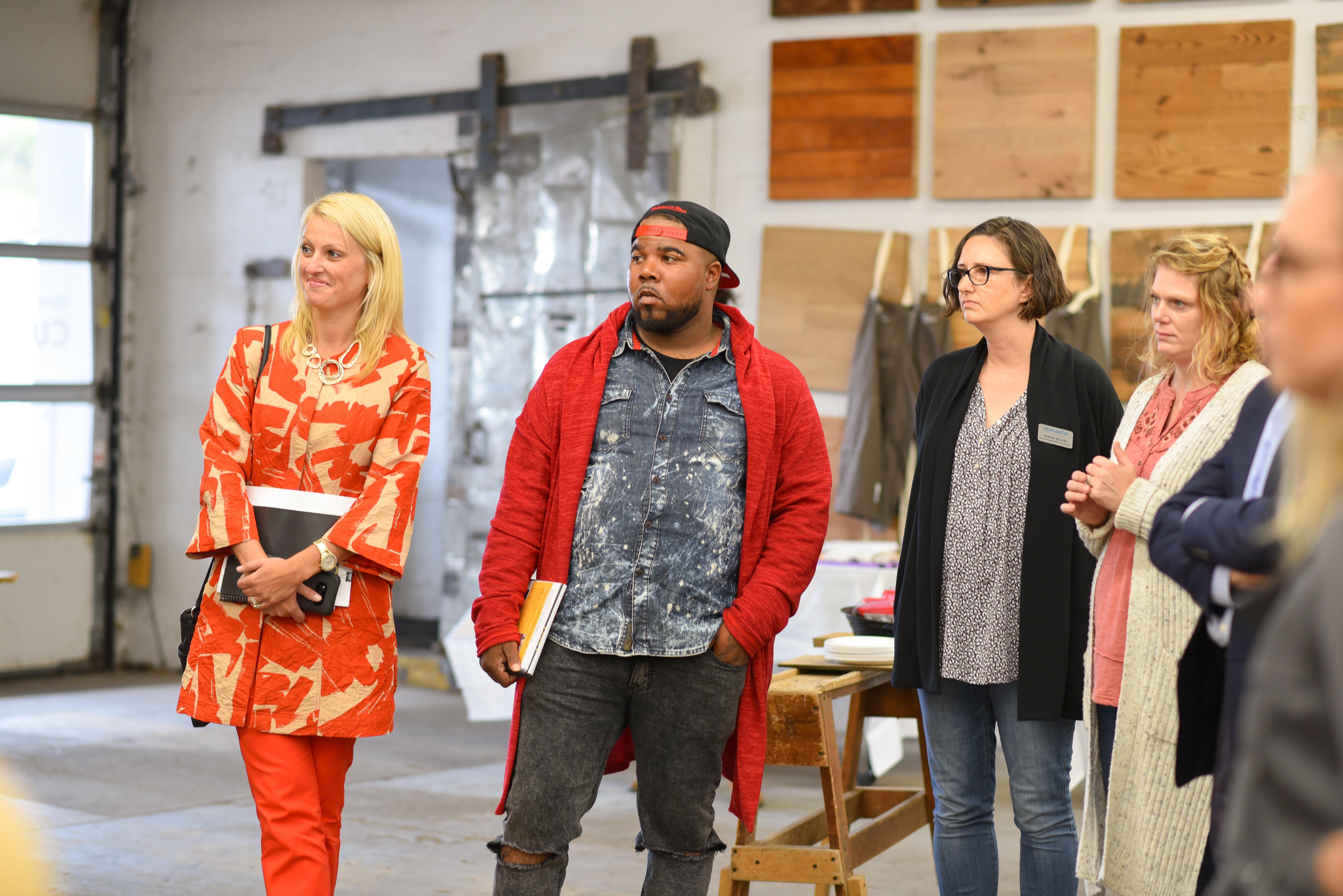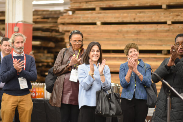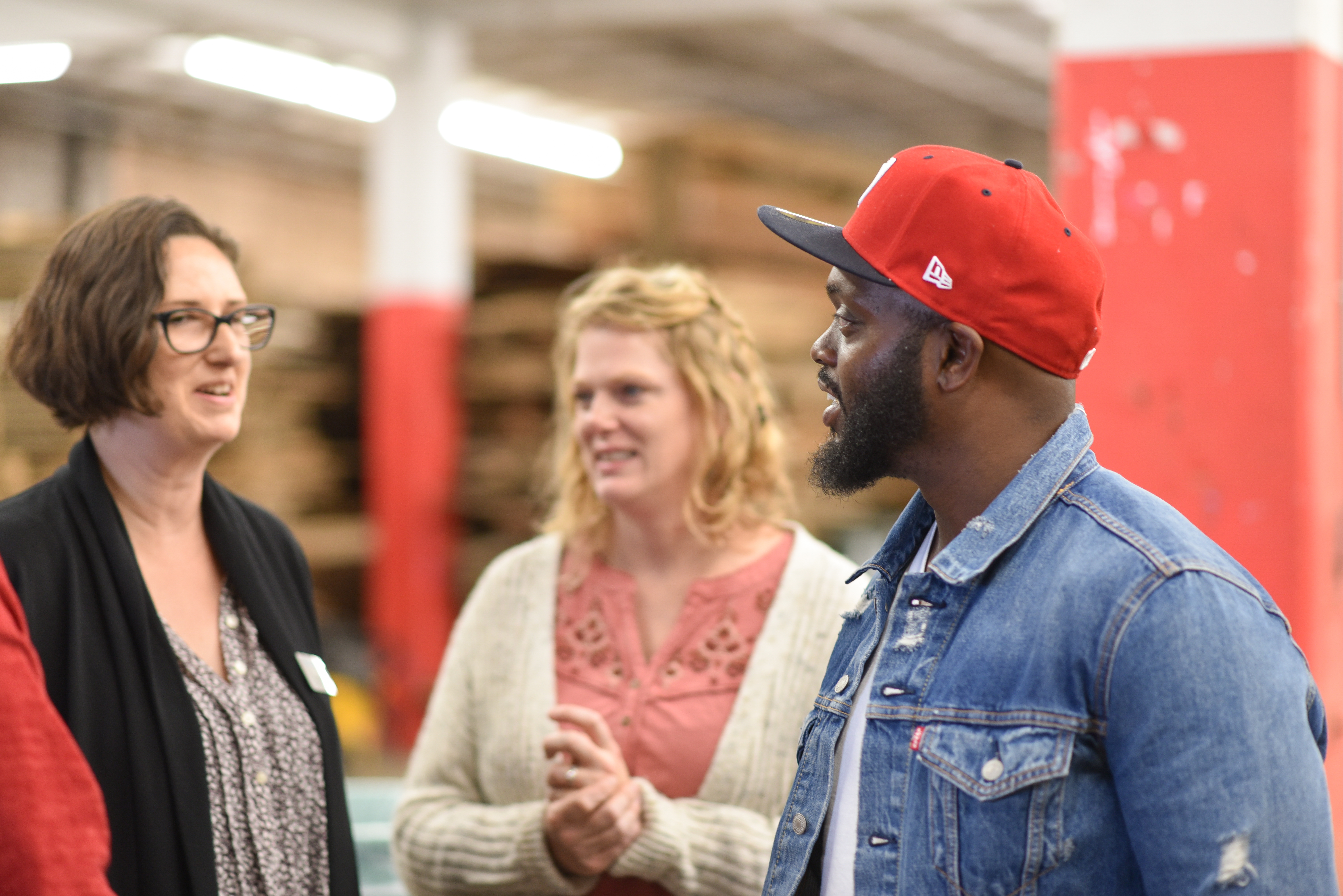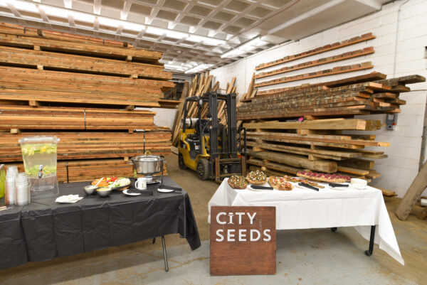 Participants in the “Revitalizing East Baltimore” tour were able to learn more about Humanim’s social enterprise work in Baltimore, including a visit to Details Deconstruction sites, our Baltimore office at the American Brewery Building, and a visit to the Brick + Board warehouse, where visitors learned how we reclaim wood taken from Baltimore rowhomes to be processed and resold for new design and construction projects – as well as how our work creates skilled, living wage jobs for individuals with barriers to employment. The visit culminated with some games of Stump, and a sushi making lesson by our culinary social enterprise, City Seeds.
