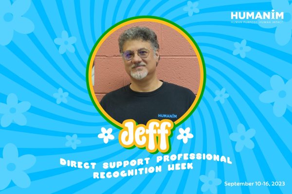 Jeff is a Direct Support Professional (DSP) who has been working as a Job Coach at Humanim for four years. Before then, he was a DSP in our Meaningful Day program for six years. In 2021, Jeff was selected as a winner of DSP Recognition by the Maryland Department of Disabilities and Maryland Developmental Disabilities Administration.
