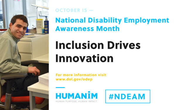 October is National Disability Employment Awareness Month. A workforce that is inclusive of special skills and talents is an innovative one, and we see this every day in our clients and employees. At Humanim we support an inclusive economy and celebrate the contributions of our workforce with special needs and special abilities!