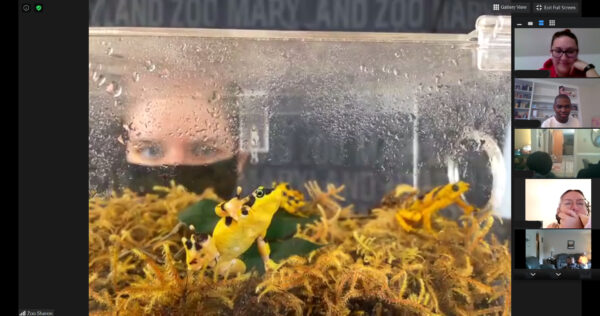 Earlier this month, Humanim’s Developmental Disability Services Virtual Learning Campus partnered with The Maryland Zoo in Baltimore to host another ZOOmobile. The “Saving Species” ZOOmobile featured three endangered Zoo Ambassadors: an African Penguin, African Grey Parrot, and a Panamanian Golden Frog. Individuals were able to meet each of the animals, learn their stories and what makes them unique, and ask the zookeepers questions. They also learned about the Zoo’s conservation work with a wide range of species.