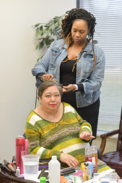 Before the event, volunteers helped individuals get ready by doing makeup, hair, and manicures.