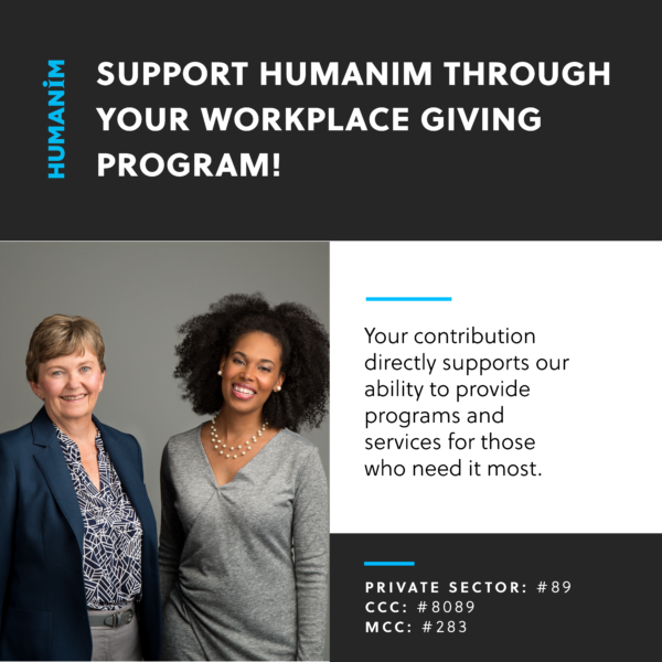 Help support Human Purpose & Human Impact through 2020 by participating in your workplace giving campaign pledge and designating Humanim as your charity of choice!